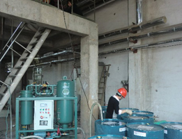 藍(lán)田堯柏水泥有限公司擁有兩條2500t/d低堿水泥生產(chǎn)線及兩座4.5MW純低溫余熱發(fā)電站,年產(chǎn)高標(biāo)號(hào)低堿水泥200萬噸,年發(fā)電量為5472×104kWh。堯柏水泥是我公司的老客戶,早些年已購(gòu)買過我公司產(chǎn)品,由于產(chǎn)品的更新?lián)Q代,堯柏水泥又從新購(gòu)買真空凈油機(jī),按照客戶要求,從新配備更高效的凈油設(shè)備,已達(dá)到使用要求。